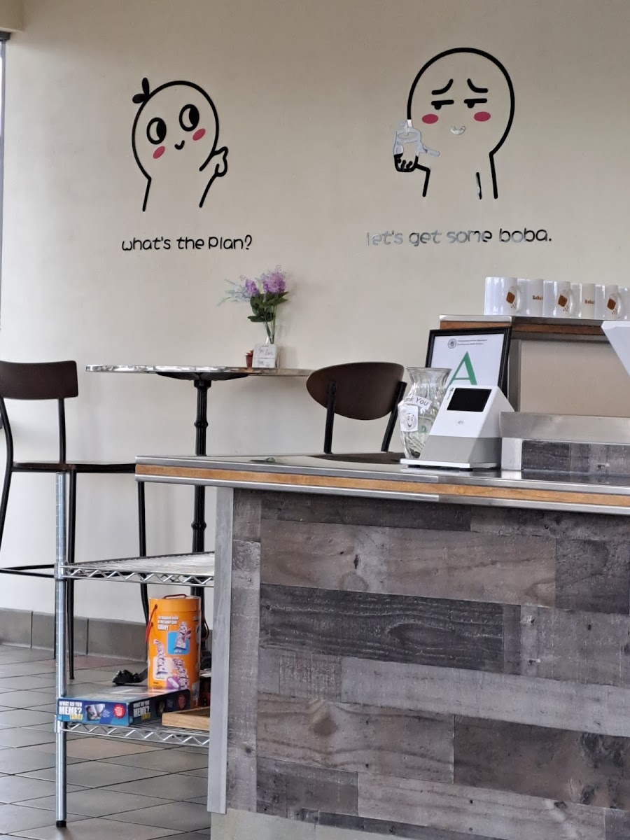 Diverse, but not overwhelming menu! There’s your classic fruit/milk teas and smoothies, as well as some more unique specialty drinks. I ordered the banana milk tea with coffee jelly and it was so so so yummy, I chugged it. The service was incredibly efficient as well as friendly, and the interior is clean with cute decor and a decent amount of seating. So glad I found a great boba shop today!!